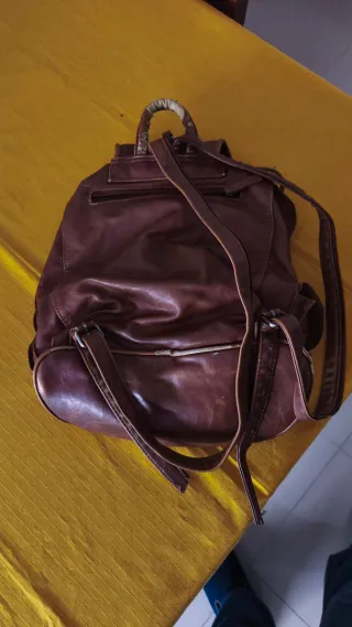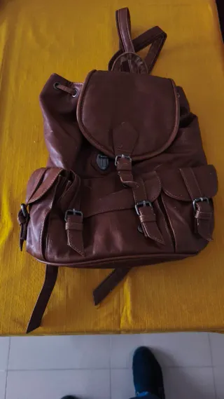 Mochila tioo bolso de piel con un diseño clásico y funcional. - Cierre principal con cordón y solapa. - Bolsillos frontales con hebillas. - Correas ajustables para los hombros.
