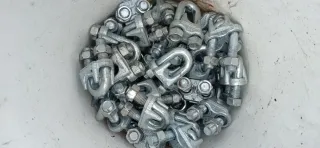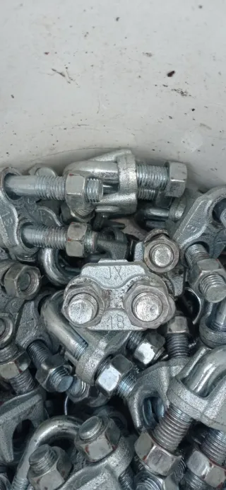 Sujetacables (Perrillos) de Acero 18mm Se vende lote de abrazaderas/perrillos para cable de acero de 18 mm o de forma individual. Material robusto para trabajos de carga y fijación segura. Estado: Listos para usar. Precio lote completo consultarme. Precio por unidad 1€.