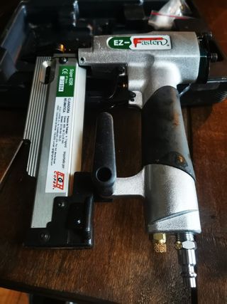 Clavadora de puntas potente y compacta. Viene con su maletín. Es una máquina resistente, super ligera y facil de utilizar. Clava puntas con y sin cabeza de 0,64 mm hasta 35 mm. Tiene expulsión de aire posteior, carro de aluminio y visor de carga.