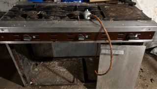 Fogón industrial de gas con dos quemadores. Ideal para cocinas profesionales o para quienes necesitan una superficie de cocción robusta. - Construcción metálica. - Dos fogones de alta potencia -Plancha