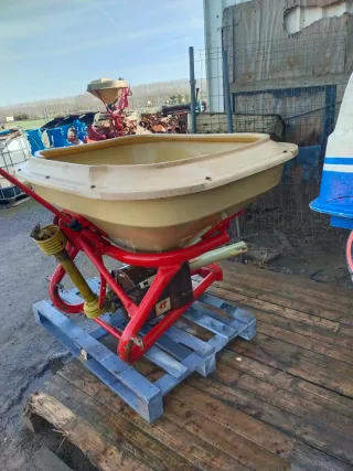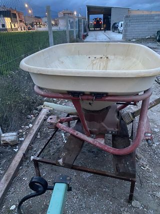 Forma de contacto: Telefono y WhatsApp-686 476 394. Alfredo Sanchez. Talavera de la Reina (Toledo). Abonadora pendudar de 600 Kilos de la marca Vicon, empleada para abonar olivos, le falta el pendulo. Tiene el cardan. Se le ha hecho alguna reparacion a la tolva. Funciona bien.