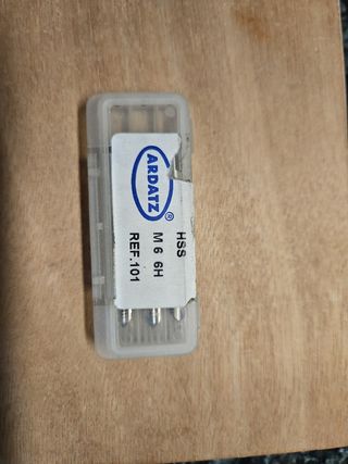 Juego de machos de roscar de alta velocidad (HSS) de la marca ARDATZ. - Modelo: M6 6H. - Referencia: REF.101. - Incluye 3 machos.