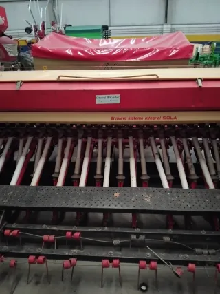 Sembradora agrícola marca Solá, modelo Trisem 194. De semilla solo . Nunca abono. - 3 metros. 25 caños con 22 rejas actualmente mas las otras 3. Carga 500 kl.. Con variador. Borrahuelllas y tabla niveladora delantera que no esta en la foto. Esta nueva.
