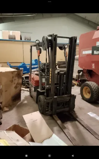 Carretilla elevadora Toyota en buen estado. - 4 metros de elevación. - 1500 kg de capacidad de elevación. - Émbolo se mueve hacia izquierda y derecha. - Pierde aceite por un retén del mástil, pero funciona sin problemas. - 6594 horas.