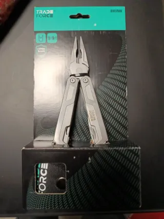 Herramienta multiusos TRADE FORCE con 16 funciones. - Diseño compacto y resistente. - Incluye pinzas, destornilladores y otras herramientas útiles. - Funda para llevar - Viene en su empaque original. - Cuenta con garantía de por vida.