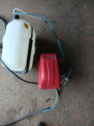 Se vende conjunto de depósito marca espumas y bomba de la marca ARAG. - Depósito blanco de plástico. - Bomba roja con logo ARAG.