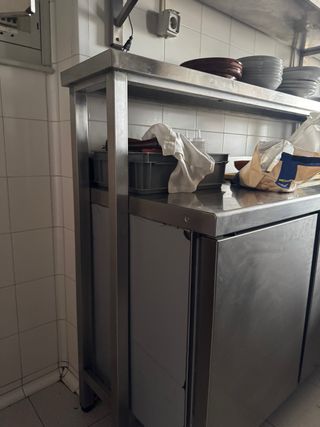Vendo mesa refrigerada profesional Edenox, ideal para bares, restaurantes, cafeterías, obradores o cocinas industriales. Fabricada en acero inoxidable, muy resistente y fácil de limpiar. Dispone de dos puertas refrigeradas tipo bajo mostrador y un grupo frigorífico lateral. Incluye estante superior para almacenaje (tal como se ve en la foto). ✔ Características: • Marca: Edenox • Tipo: Mesa refrigerada / Bajo mostrador • Acabado: Acero inoxidable • Refrigeración: Grupo frío lateral • Puertas: 2 puertas • Control digital de temperatura • Patas regulables en altura pesa 120kg ancho: 140cm fondo: 70cm alto: 88cm