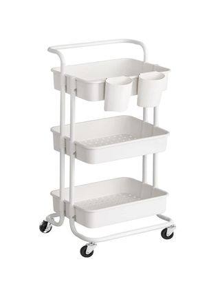 SONGMICS Carro Rodante, Caritro de Almacenamiento de 3 Niveles, con Mango, 2 Organizadores Pequeños, Marco de Acero, Cestas de Plástico, para Dormitorio, Lavadero Baño, Blanco BSC067W01