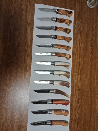 Opinel N8 con cabos modificados Precio por unidad Cabos de madera de raíz de olivo , sabina etc... - Mecanismo de seguridad Virobloc. Si alguna te gusta , se mandan mejores fotos , mas detalladas , videos etc....