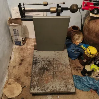 Báscula antigua de pesaje en buen estado. - Diseño clásico. - Base de pesaje amplia. - Mecanismo de contrapeso.