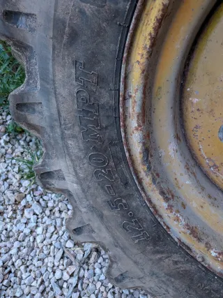 2. Ruedascompletas, delanteras para Caterpillar 432. - Medida 12.5-20. - Llanta amarilla. - Ruedas MACIZADAS con Gel para no pinchar. No llevan aire