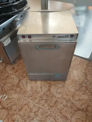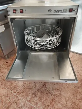 Lavavajillas industrial de cocina de la marca Sencotel en buen estado de funcionamiento. Mide 60 cm de ancho 65 de fondo y 85 de alto - Fabricado en acero inoxidable. - Panel de control con botones. - Tirador frontal para apertura.
