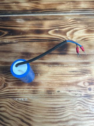 Condensador azul para uso monofásico. - Capacidad: 300 microFaradios (µF). - Voltaje: 250V AC. - Frecuencia: 50/60Hz. - Rango de temperatura: -40°C / +70°C. - Certificaciones: CQC, CE. Capacidad comprobada, ver fotos. Nunca usado. Adecuado para mejorar el arranque en equipos que necesiten inercia inicial, motores de elevadores, entre otros usos.