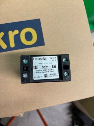 Transformador de corriente marca Circutor, modelo TC5.2. - Relación de transformación: 125/5A. - Modelo: TC5.2 FS 5. - Norma: IEC 61869-2.