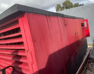 Grupo electrógeno de color rojo con base gris. Presenta un diseño robusto y compacto. Grupo Electrógeno de 300kva Año 2003 En muy buenas condiciones Está según se ve en las fotos. Si tiene alguna duda, consulte. - Panel con rejilla de ventilación. - Puerta lateral con cierre. Está en Sevilla.