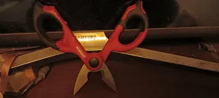 Tijera eléctrica Proiman con diseño de dos anillas. Fabricada para ser extra fuerte. - Mango ergonómico con detalles en negro. - Hojas de metal dorado.