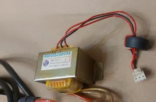 Transformador de Corriente alterna. 2 salidas de 9V AC usando comun (10.8V en vacío). 3.5A / 4.A (estimado) - Modelo: MJ M3523 - Número de parte: 45003523009B - Fabricante: Shenzhen Meixin Electronics Co., Ltd. Peso 550g + cable. Compatible registradora Olympia CM735