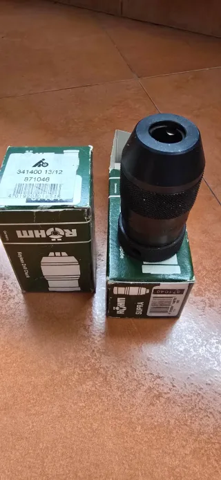 Portabrocas ROHM modelo 341400 El portabrocas cónico tipo B18 con capacidad de 1 a 13 mm es de Rohm, especialista alemán en elementos de fijación. De acción rápida, versión industrial ligera. Con una mayor resistencia gracias a su fabricación industrial. Con garras planas para una sujeción perfecta. El precio es por cada uno si se compran los dos juntos se dejarían en 130€.