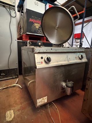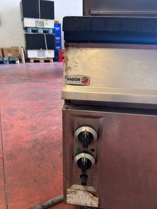 Equipo de cocina industrial de la marca Fagor. Fabricado en acero inoxidable. - Tapa abatible. - Panel de control con mandos. - Rueda de ajuste lateral. - Medidas: 85 largo; 92 profundo; 84 alto