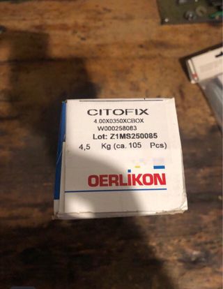 electrodos de soldadura CITOFIX. - Modelo: 4.00X0350XCBOX - Referencia: W000258083 - - Peso: 4,5 Kg (aprox. 105 piezas) - Fabricado en la UE.