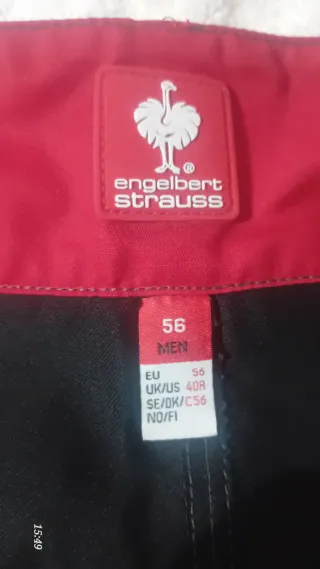 Pantalón de trabajo de la marca Engelbert Strauss en color negro. Diseñado para ofrecer comodidad y durabilidad. - Bolsillos cargo con detalles en rojo. - Cintura con trabillas para cinturón. - Costuras reforzadas.