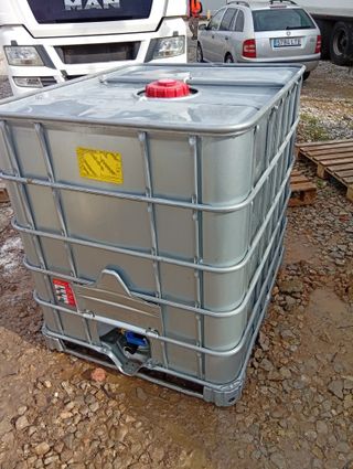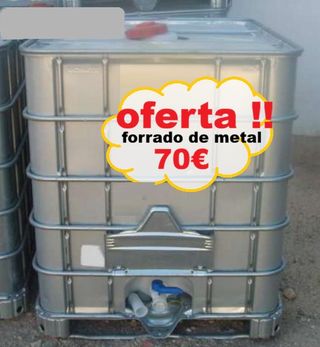 Recogida en Aldaia con cita previa ) __ Depósitos 1000 litros forrado chapa metálica completamente limpios procedentes de suavizantes para la ropa __ obtener 2000 3000 4000 o 5000 litros // bidones GRG IBC bidon, tanques, bidón, contenedores reciclados, depositos de mil 1000 litros con jaula, armazón metálico, palét y grifo como nuevos para agua No potable # Ideales para riego regar a goteo, gasoil, gasóleo, adblue etc