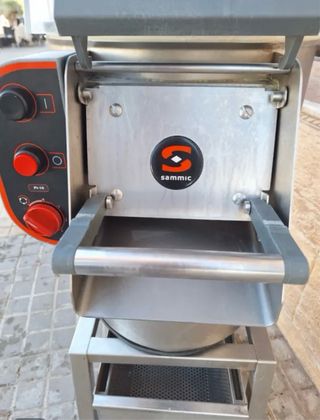 Peladora de patatas industrial de la marca Sammic. Fabricada en acero inoxidable. - Diseño robusto y duradero. - Panel de control con botones. - Soporte metálico con bandeja.