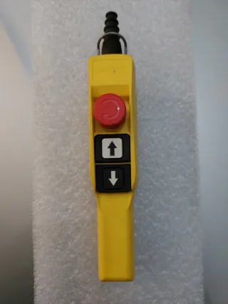 Mando para polipasto o winche. - Color amarillo. - Botón de parada de emergencia rojo. - Botones de subida y bajada.