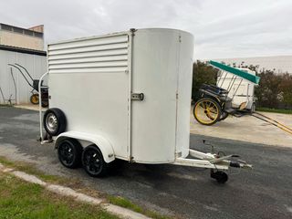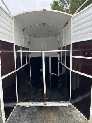 Remolque tipo van para caballos con matrícula blanca. - Interior espacioso. - Barras de separación interiores. - Puertas traseras y laterales abatibles.