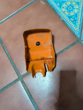 Manillar de plástico naranja para motosierra Husqvarna. Incluye el cable del acelerador. Gatillo y bloqueo y muelle sinemblock para Husqvarna 40 y 45, en muy buen estado hago envios - Color naranja. - Incluye cable del acelerador.