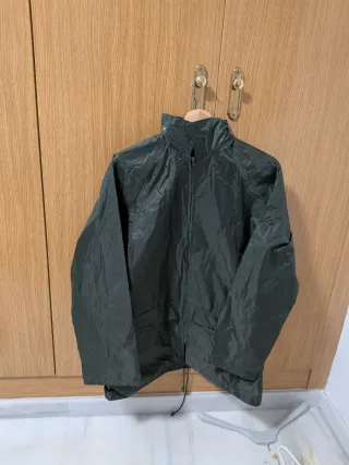 Chaqueta impermeable de color verde. - Cierre de cremallera frontal. - Cuello alto. - Puños elásticos. - Capucha -Escucho ofertas
