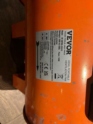 Ventilador axial portátil VEVOR, ideal para ventilación industrial. Se ha utilizado solamente un mes - Modelo: BT-SHTBA-0510 - Potencia: 145W - Voltaje: 230V AC / 50Hz - Color: Naranja