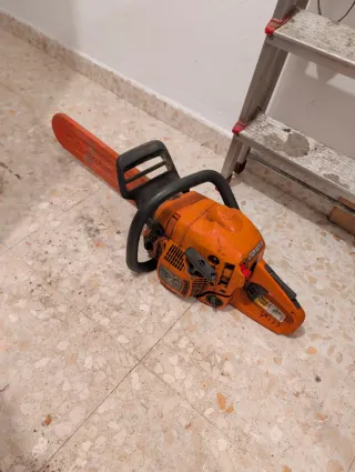 Motosierra Husqvarna 135 en buen estado. Para revisar y poner a punto, arranca pero se ahoga, hago envios - Color naranja y negro. - Barra de corte. - Mango ergonómico.