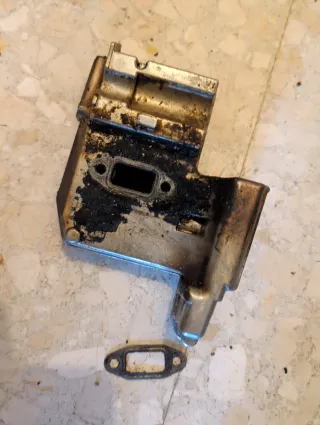 Piezas de escape y junta para motosierra Sthil MS200 ms200T 020 y 020T, en buen estado es original - Escape de metal plateado. - Junta de goma negra.