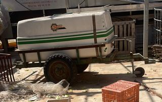 Carretilla pulverizadora de la marca Manez Lozano, con un diseño distintivo en rojo y blanco. - Depósito con medidor de capacidad. - Ruedas para facilitar el transporte. - Logo de la marca visible. -Motor honda gx 5,5 cv - Bomba comet Aps 41- membranas, aceite motor y bomba recién cambiado, válvulas y membranas revisadas.Opcion de vender solo motobomba. Capacidad 300 litros.