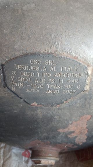 Compressor de ar com tanque de 500 litros. O motor e o grupo compressor foram substituídos por peças novas. - Capacidade do tanque: 500 L - Motor novo - Grupo compressor novo - revision echa -aceite cambiado Se puede provar
