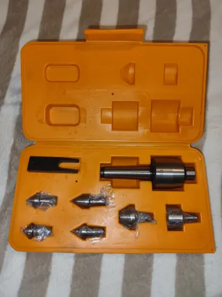Set de contrapunto giratorio MT3, ideal para trabajos de torno. El conjunto se presenta en un práctico estuche naranja. Juego completo de contrapunto giratorio con cono Morse MT3, ideal para torno. Incluye cuerpo principal con rodamiento y varias puntas intercambiables (puntas cónicas, punta viva, adaptadores, etc.), todo guardado en su estuche original. ✔️ Estado: nuevo, sin usar ✔️ Cono Morse MT3 ✔️ Funcionamiento suave y preciso ✔️ Ideal para trabajos de centrado, torneado entre puntos y mecanizado general Se entrega tal como se ve en las fotos. #torno #punto #fresadora #Tornero #taller - Incluye varios conos de contrapunto. -