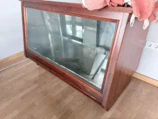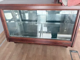 Vitrina expositora de madera y cristal de la marca VRINOX. Ideal para exhibir productos. - Estructura de madera oscura. - Frontal y laterales de cristal. - Diseño clásico y elegante.