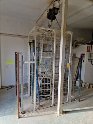 Montacargas de 1000kg usado, ideal para uso industrial o casero. Se encuentra en buen estado general, aunque presenta señales de uso. Longitud de cable para 3 pisos . - Capacidad de carga: 1000 kg - Estructura metálica resistente - Incluye jaula de protección medidas aproximadas alto 2,50 mt ,ancho 1,30 mt ,largo 2,10 mt Monofasico 220 voltio No envio recojer aquí