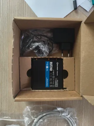 Router Teltonika RUT240 en su caja original. - Incluye fuente de alimentación. - Cable de red. - Fabricado en Lituania.