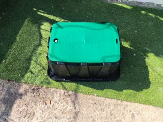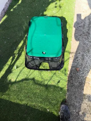 Caja de registro para riego de jardín. La tapa es de color verde y la base de color negro. - Tapa con relieve y orificios. - Base robusta. - No está usada, hago envios