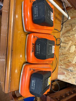 Conjunto de baterías STIHL para herramientas eléctricas. - Batería STIHL AP 180 Lithium-Ion. - Batería STIHL AP 300 Lithium-Ion. - Batería STIHL Li-Ion 36V-2.2Ah. Precio por una bateria y su cargador