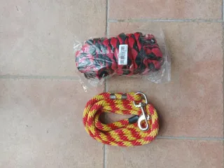 Se venden dos ramales para caballo nuevos a estrenar. - Ramal rojo y amarillo con mosquetón 2 metros de largo. - Ramal rojo y negro en su embalaje original 4 metros de largo. No se venden por sepado. Precio por los dos