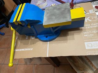 Tornillo de banco Irimo con base giratoria. Fabricado en acero forjado. - Base giratoria para mayor versatilidad. - Construcción robusta en acero forjado. - Mordazas con superficie texturizada para un agarre firme. Ancho mordazas 125mlm Peso 23 kilos Estado impecable. Preferible a recoger en mano.