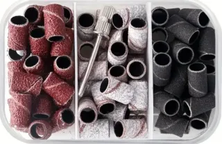 Recambios sin usar de lija, para herramientas rotativas como mini taladros, amoladoras dramel, rotali. Vienen en diferentes colores y granos. 25 unidades de cada color y su útil, para la herramienta. - Lijas de color marrón. - Lijas de color gris. - Lijas de color negro.