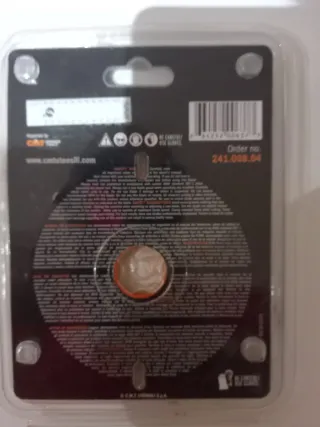 Set de cuatro discos para amoladora de 125mm de la marca Conmetall Meister. - Fabricados en Alemania. - Modelo: WU5653001-8A. - Número de pieza: JAN 485295-2501. - Velocidad máxima: 12.250 rpm / 80 m/s. - Fecha de fabricación: 06/2025.