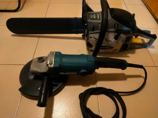 Se venden sierra eléctrica y amoladora. - Sierra eléctrica con barra. - Amoladora con disco y empuñadura.