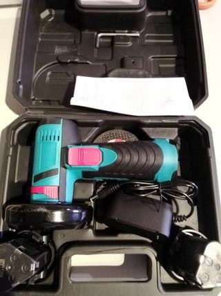 Se vende mini amoladora angular inalámbrica, completamente nueva y en su caja. - Incluye dos baterías de 12V. - Cargador de batería. - Disco de corte de 3. - Guantes de protección. - Llave de montaje.