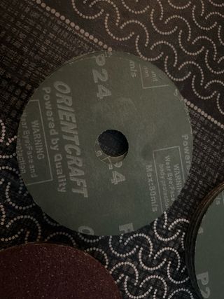 Lote de discos para amoladora, ideales para trabajos de desbaste y corte. - Incluye discos P24 y P36. - Marca ORIENTCRAFT. - Potencia máxima de 80m/s. - 49 piezas