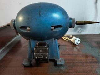 Máquina antigua de pulir y amolar, ideal para trabajos de joyería. - Estructura metálica en color azul. - Incluye accesorio cónico en el eje para discos de pulir. - Funciona con corriente de 220v. - Se vende por cierre del negocio.